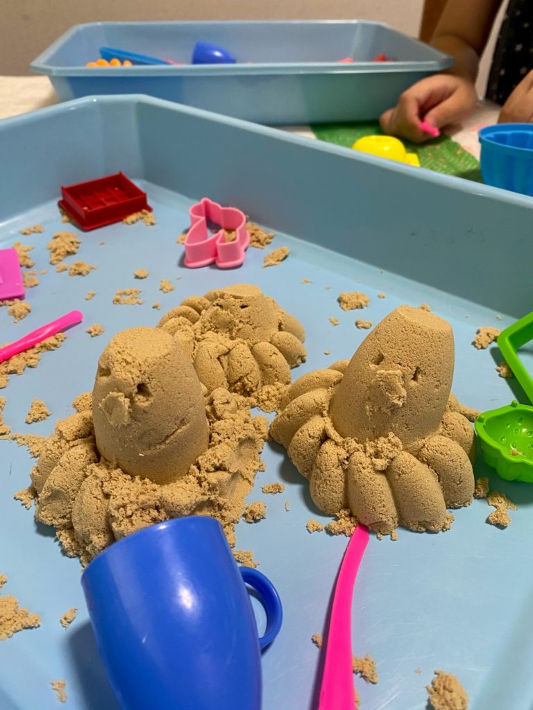 キネティックサンド🤲 2025年10月2日 最終更新日時 : 2025年10月2日 nanahoshi ※写真掲載許可頂いております 砂のような不思議な感触の粘土で遊びました! 型を取ったり、ケーキやポケモンを作ったりいろんな作品を作っていた子供たちです😊🩷